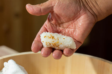 「旨さ」にこだわって厳選した鯖と、食味ランキング特Aを通算12回取得している地元「京都府産コシヒカリ」を使用。シャリは季節や気候に応じて最適化するため、日々もち米と食米のブレンド比率を調整します。